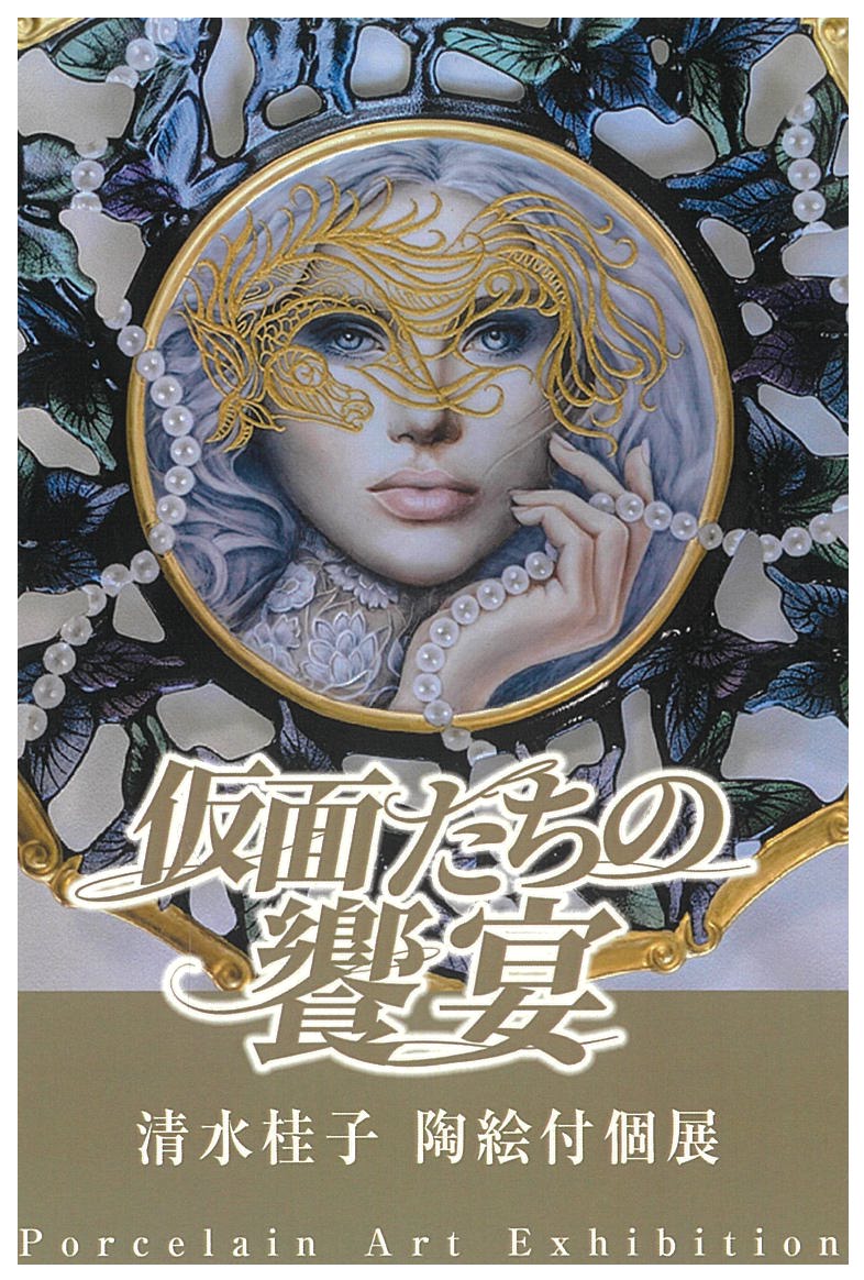 “仮面”をテーマに、独自のデザイン性と圧倒的な技術力で彩られた手描き陶磁器が並びます