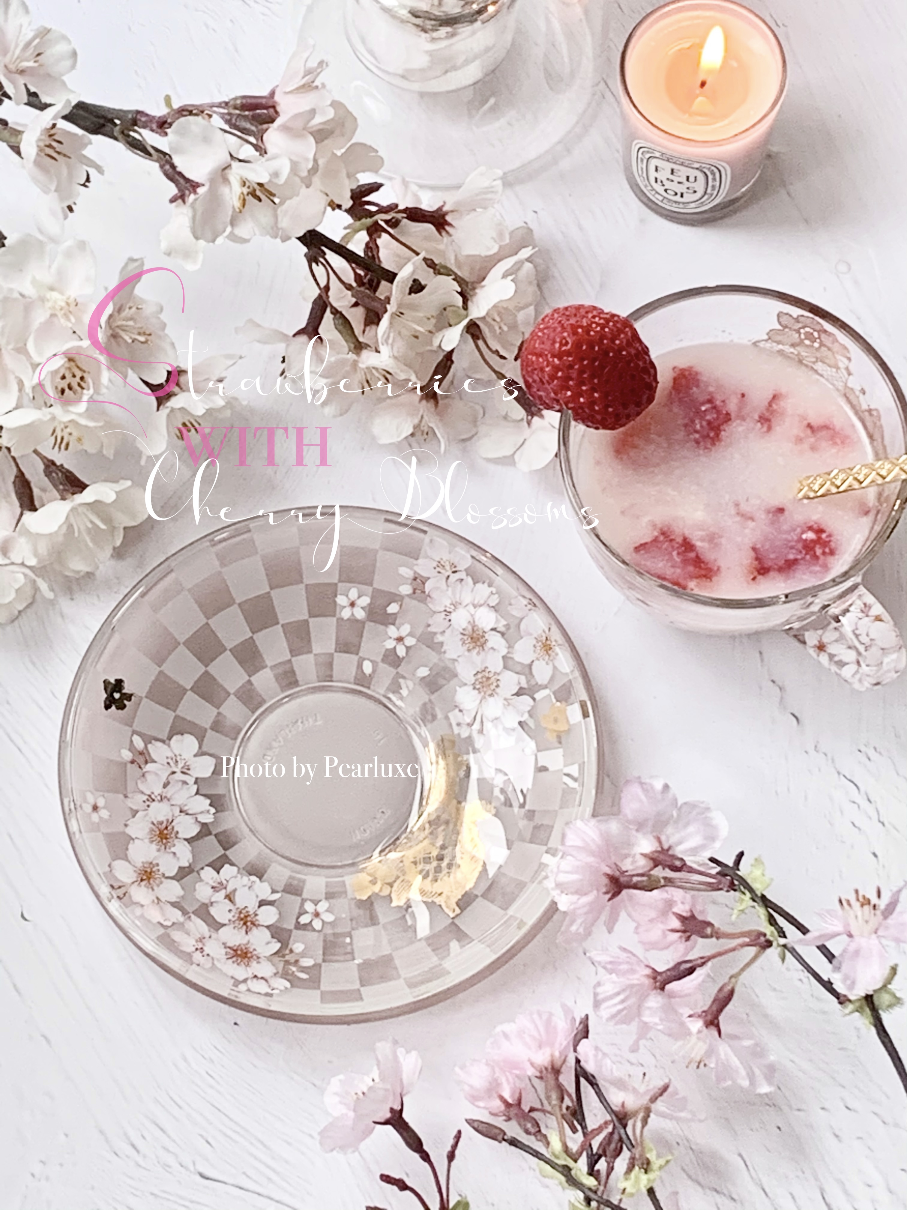 いちご甘酒♡桜と市松模様のガラスティーカップ