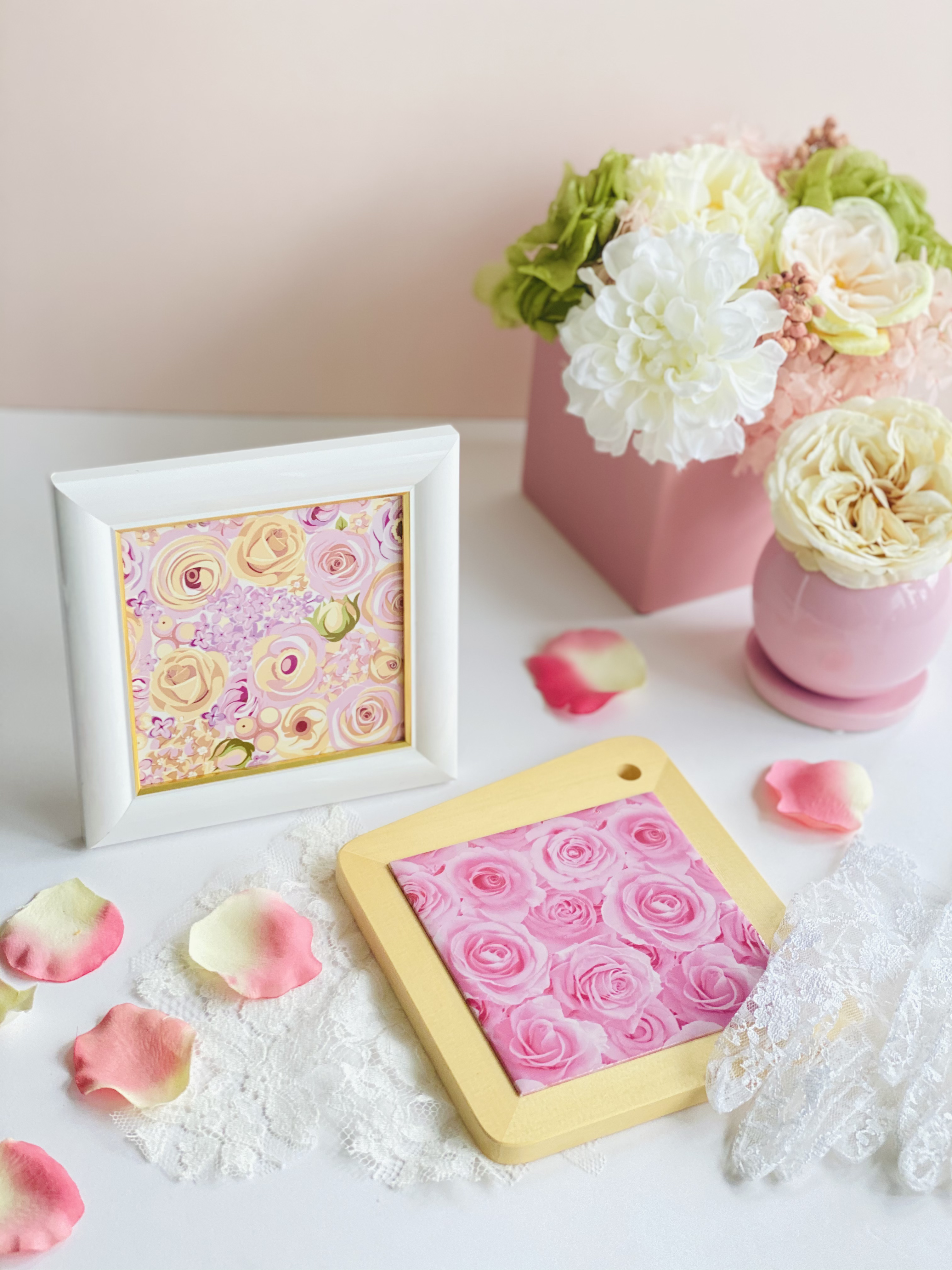 生徒様作品です 薔薇の季節にピッタリな華やかなインテリアアイテムになりました