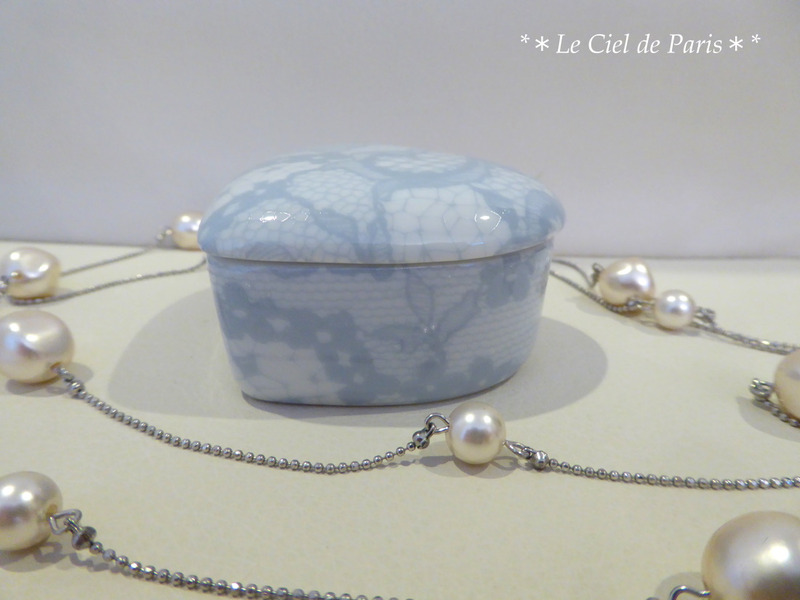 ミニサイズのハート型ボックスには、ブルーのブライダルレースを合わせると大人可愛く仕上がります。大切なアクセサリーなど「何を入れようか」考えるひとときもまた楽しく幸せな時間ですね。