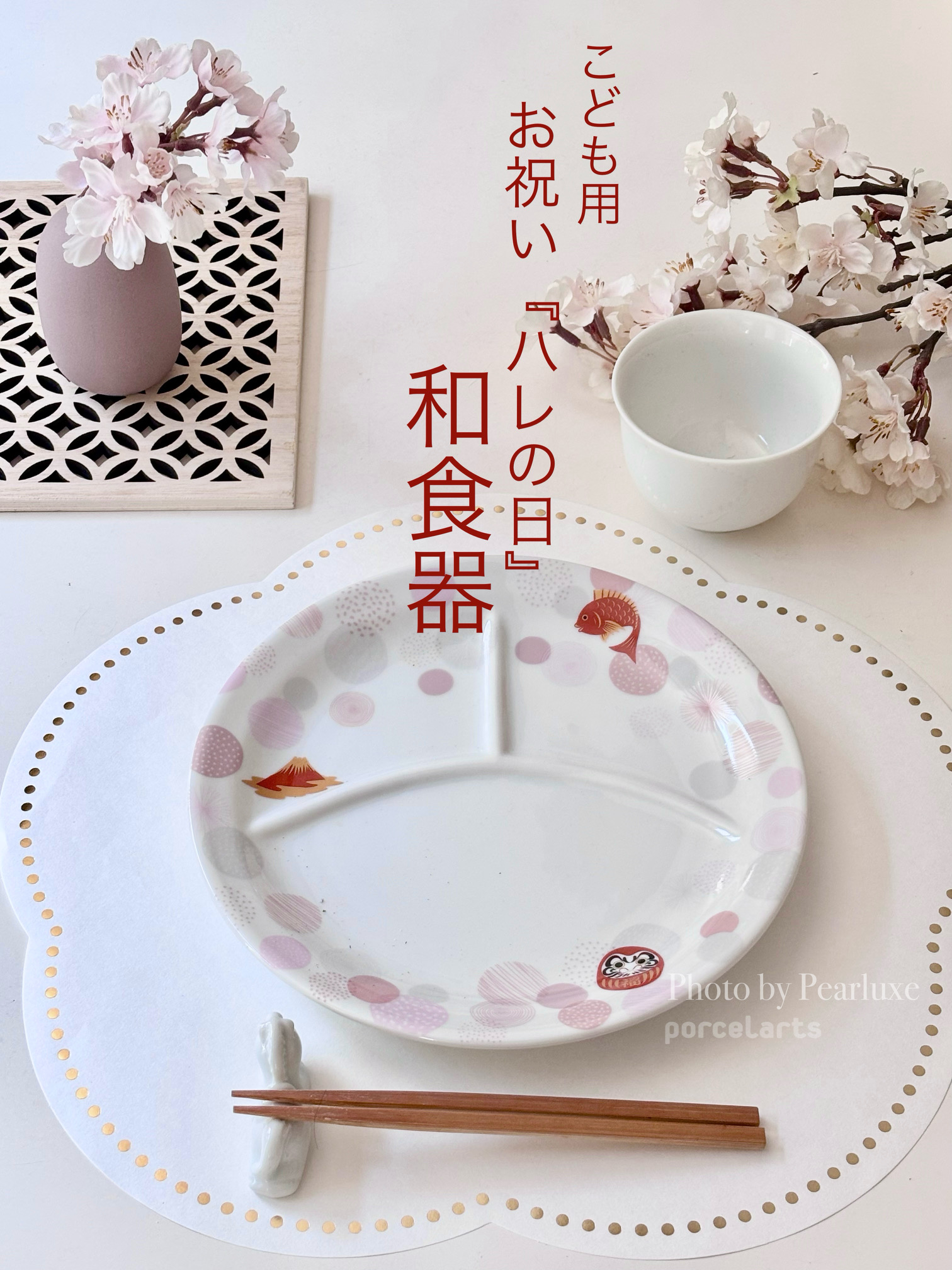 『お正月』『節分』『ひな祭り』『卒園卒業&入園入学お祝い』『こどもの日』『七五三』『お食い初め』 そんな『特別な日=ハレの日』には、ベビー&キッズ達だって大人と同じようにちゃんとしたお祝い用の食器で食べさせてあげたい♪ ということで、キッズ向けに人気&便利な仕切りがついてるワンプレート白磁を『ハレの日』向けなデザインで作ってみました。 1枚で完結するから洗うのも楽チンです!