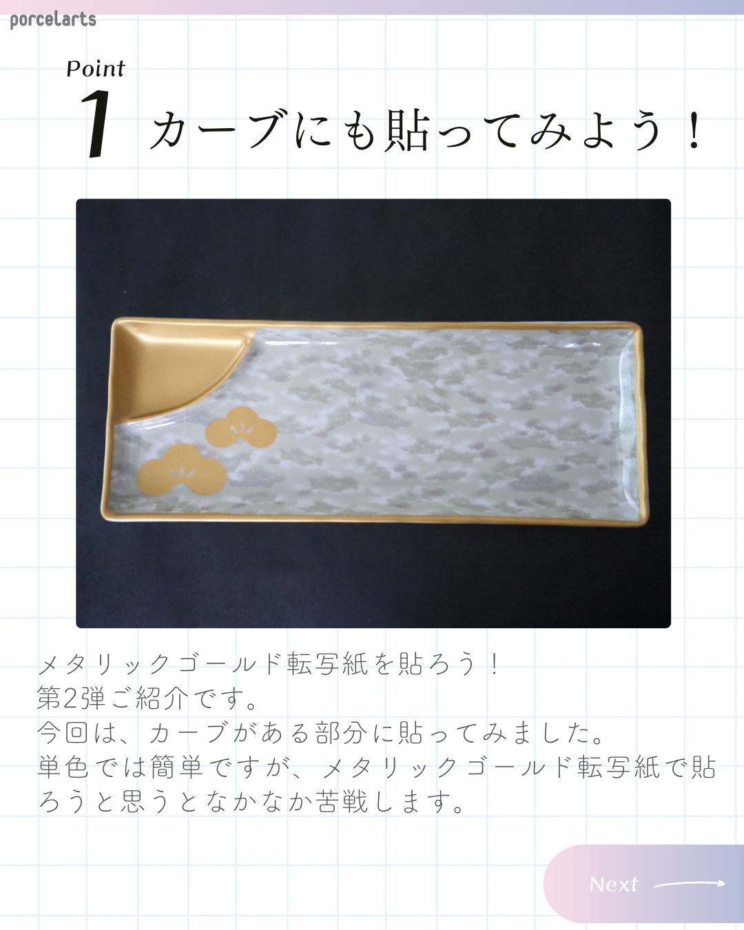 メタリックゴールド転写紙。全面貼りをしている方ならわかる。 部分使いはしたいけど、全面は貼りたくない。そんな転写紙ですが(笑) 慣れてしまえばこっちのもの!前回は、まず貼ることに慣れる。でしたが今回は曲面に貼る!です。 このおさかな皿のカーブ、簡単じゃない?って思う方もいらっしゃるかもしれませんが・・・ 結構反ってます(笑)どの角から貼るかも大事なポイントです! みなさんはどの角が一番貼りにくいと思いますか?答えは画像をご覧くださいね! ぜひメタリックゴールド転写紙をお使いくださいね! おさかな皿は隠れ人気アイテム!!薬味を置く場所があるのも嬉しいポイントです。 便利なアイテムなのでおすすめですよ。