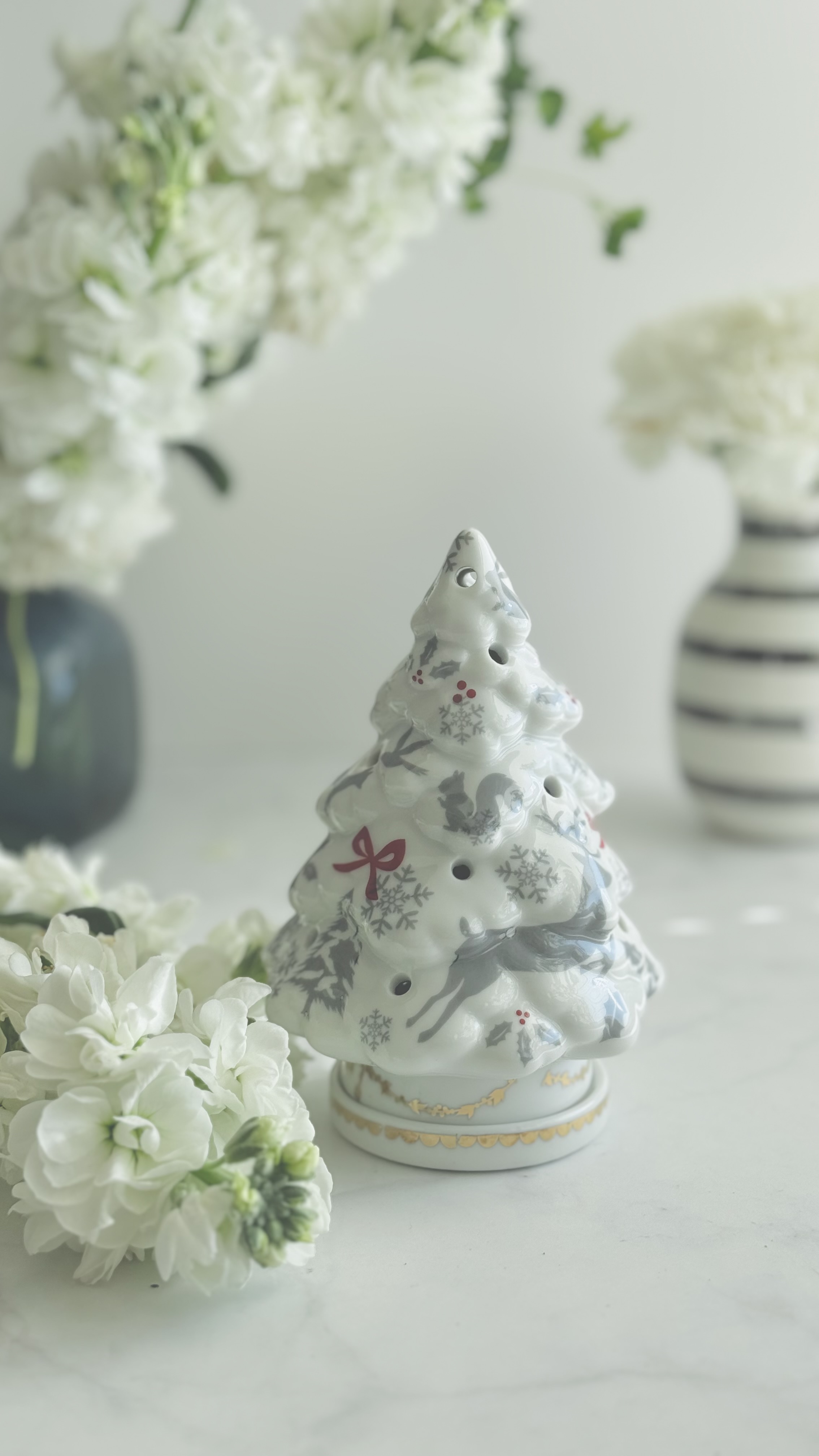 ミラノコルティナオリンピック観ていると雪景色が美しいですね このツリーキャンドルはツリーに雪が積もっているような形状です 冬にぴったりの白磁です
