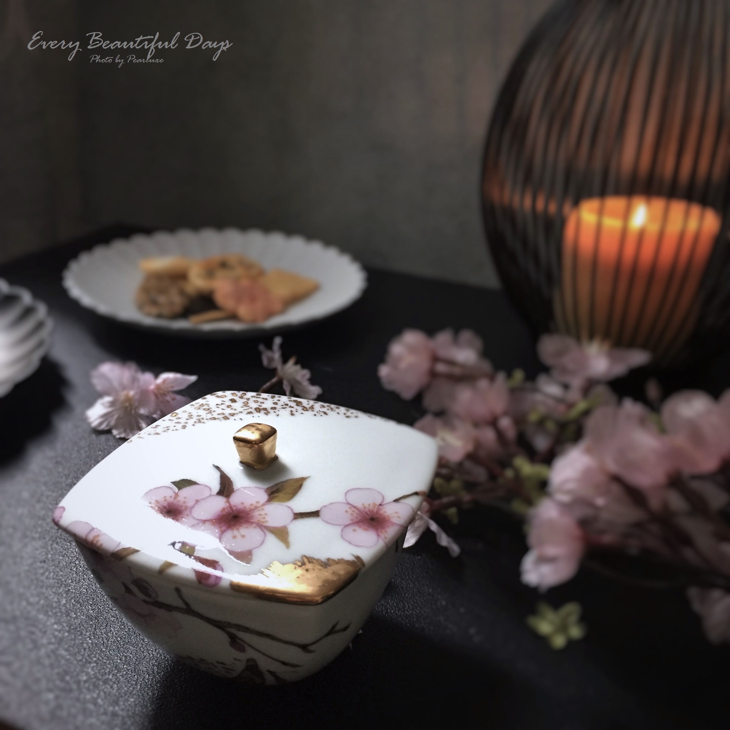 着物が似合う妖艶な美しいレディーをイメージして、煎茶碗を作りました♡ 夜のお茶会シーン。 夜桜や夜梅を楽しみながら、しっとり大人の夜のお茶会を楽しむ日に使いたいです。