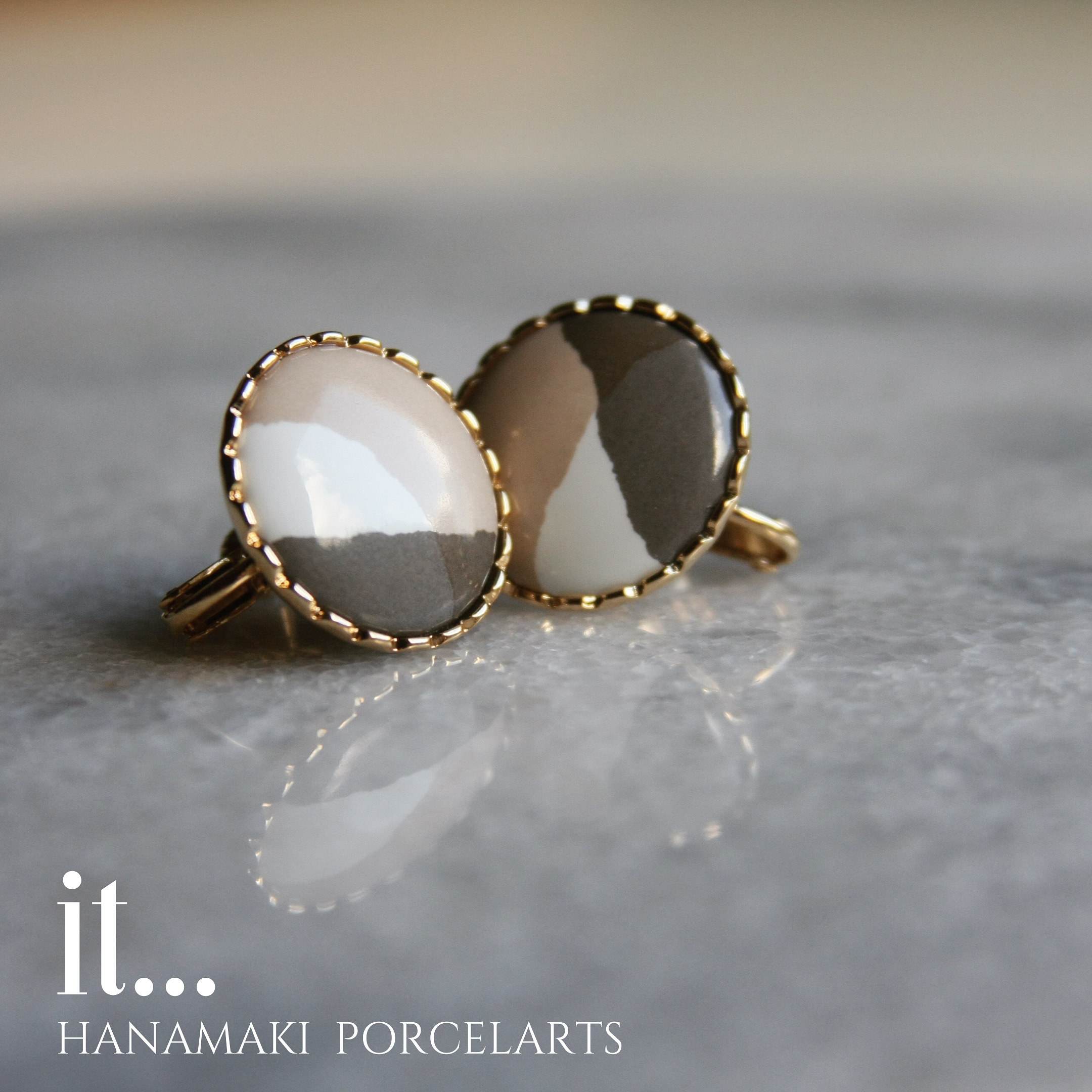単色転写紙を自由にちぎって使ったポーセラーツイヤリング 新色のダークグレーは渋みがあって秋冬アクセサリーづくりにぴったり!