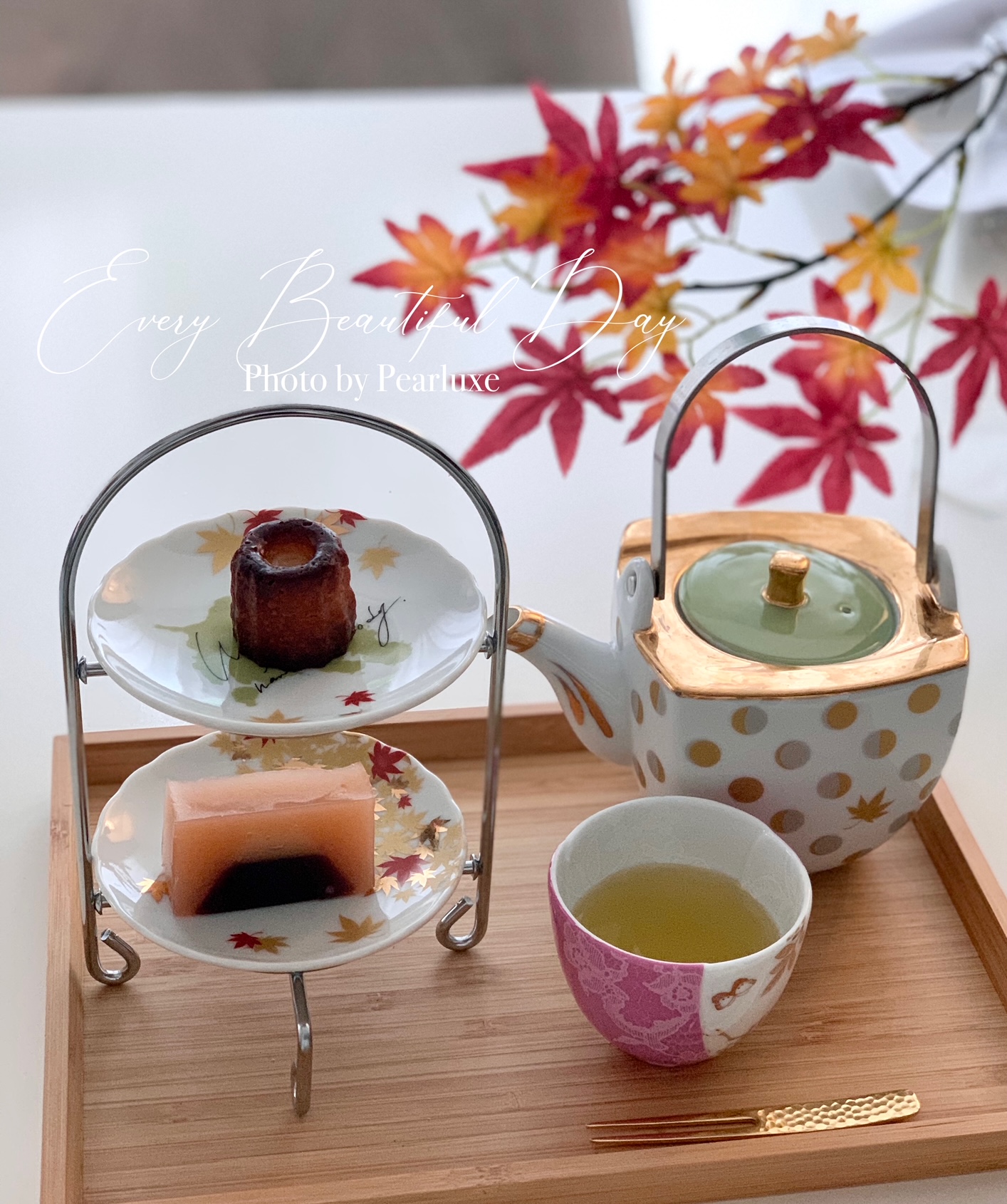 豆皿を2段スタンドにのせて、和菓子のおもてなし♡おうちでプチアフタヌーン気分が味わえます。ポットは月の満ち欠けにデザインなっていて、星空に興味が出てきた4歳息子のお気に入りです♪