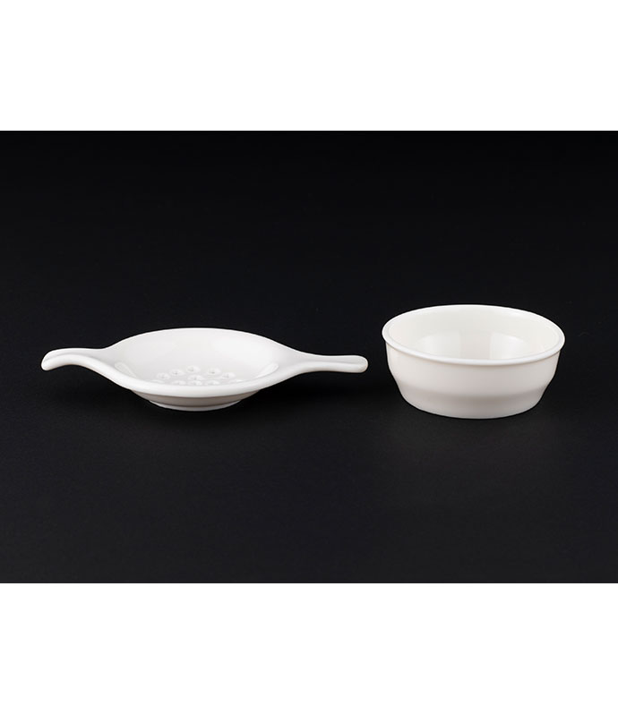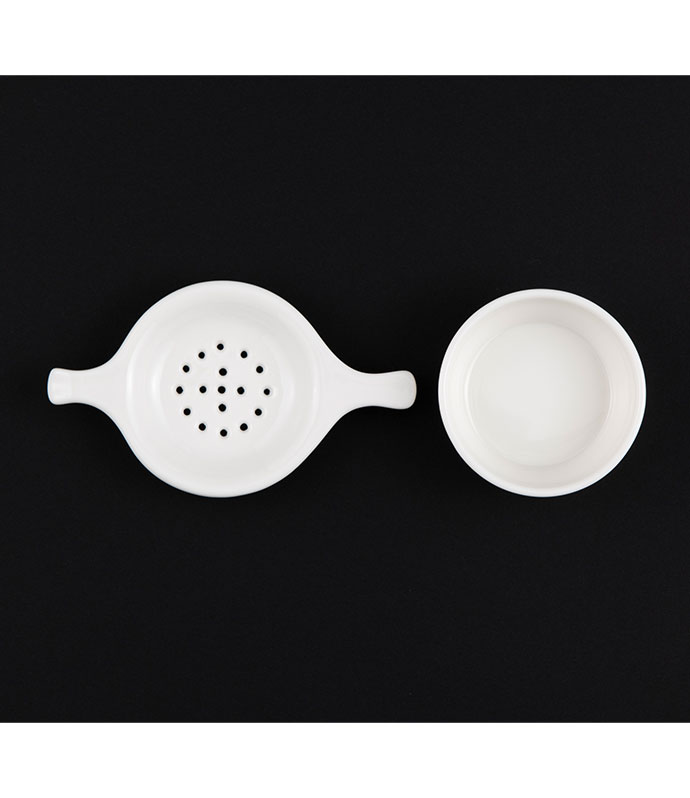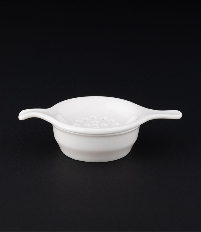 絵付けに適した白磁器です。絵付けした後も安心してご使用いただけます。 ストレーナーにも絵付けをして、華やかなティータイムを。