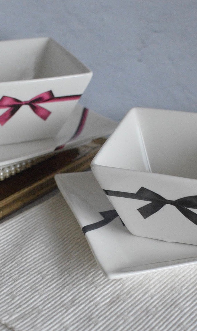 食器(白磁)どんな形でもリボンのサイズは2種類あるので合わせられます。