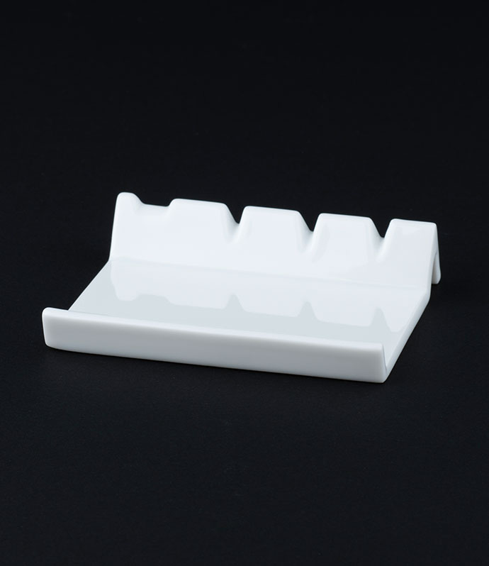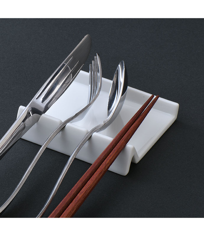 絵付けに適した白磁器です。絵付けした後も安心してご使用いただけます。 お箸も置ける便利なカトラリーレストです。