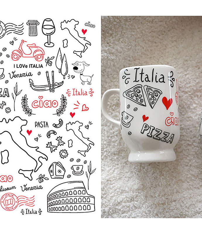 白磁用 I LOVE ITALIA イタリア転写紙 A4サイズです。
