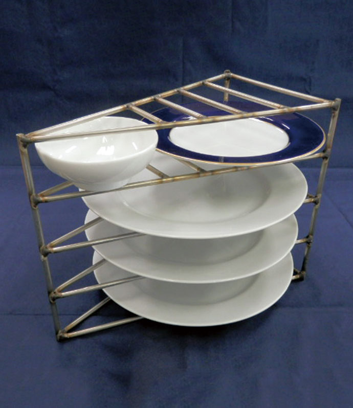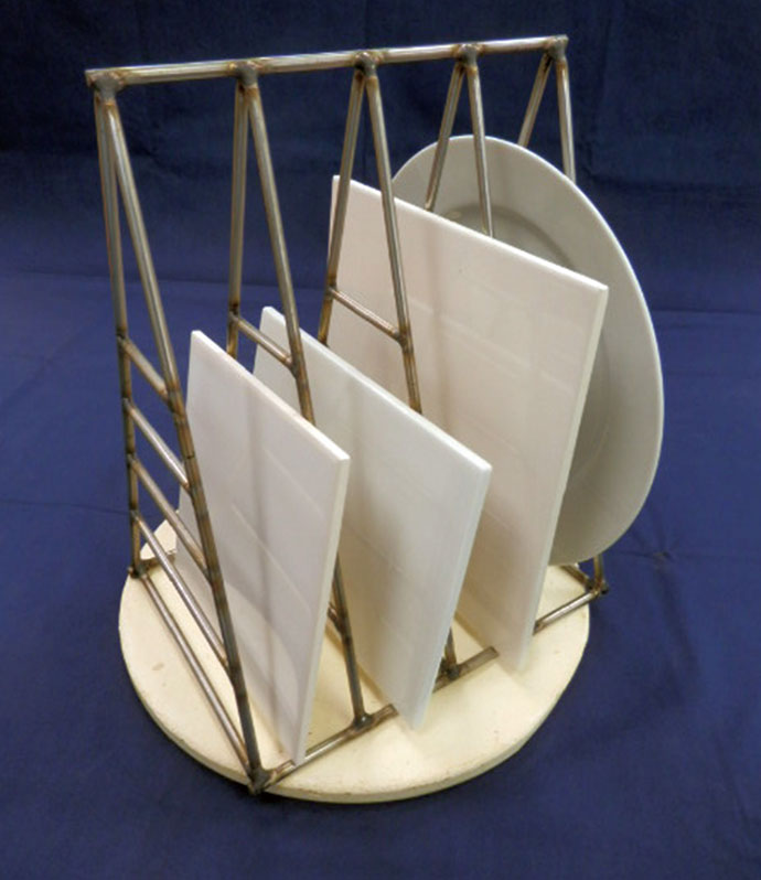 支柱と棚板を組まずに複数枚のプレートなどを効率よく焼くことができるステンレス製の焼成ラックです。