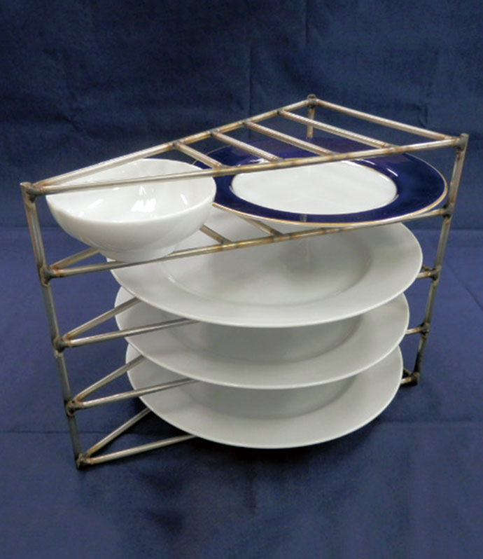 支柱と棚板を組まずに複数枚のプレートなどを効率よく焼くことができるステンレス製の焼成ラックです。