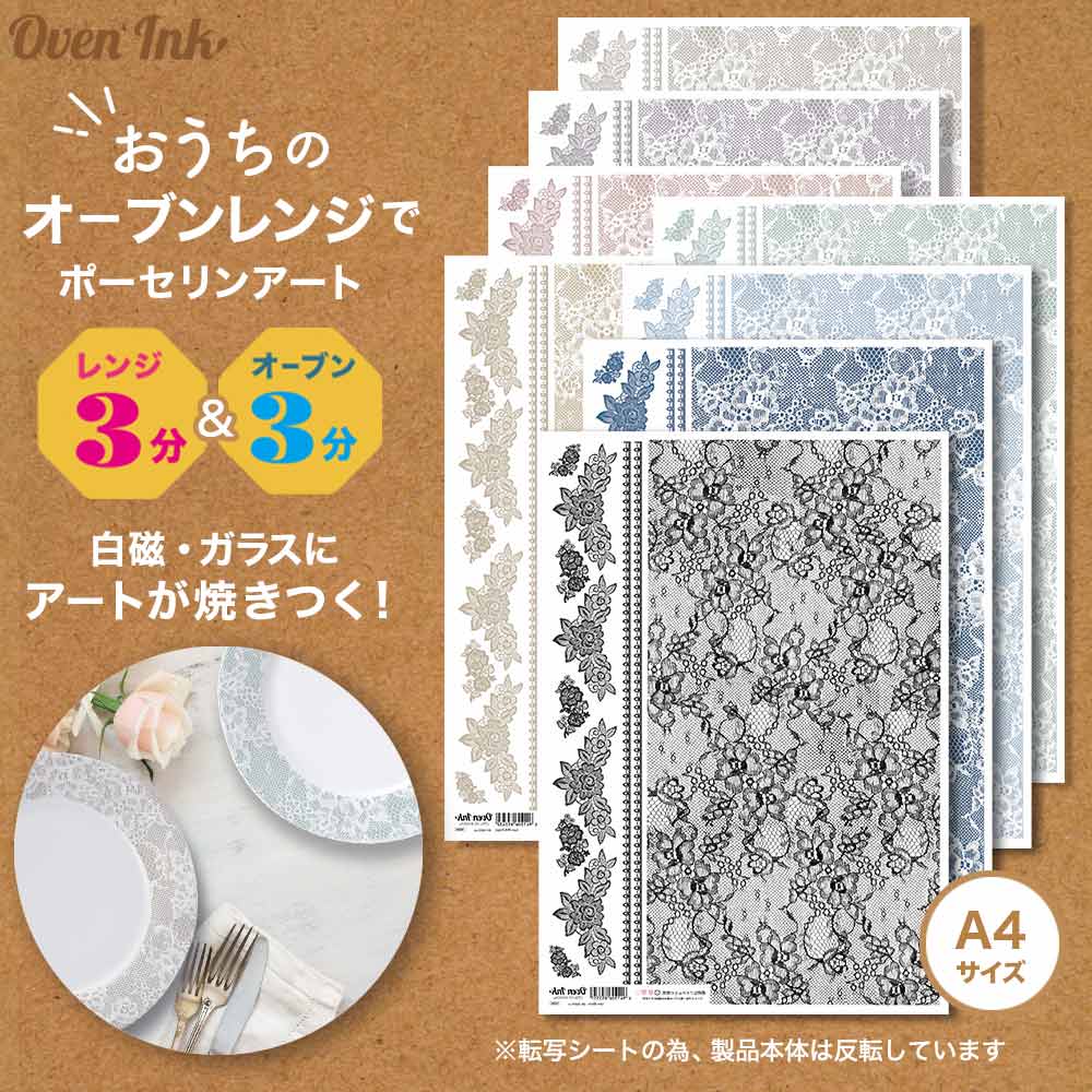 ※オーブンインクはシールではありません。電子レンジ&オーブンレンジを使用して絵柄のみを転写し焼き付けできる新素材シートです。