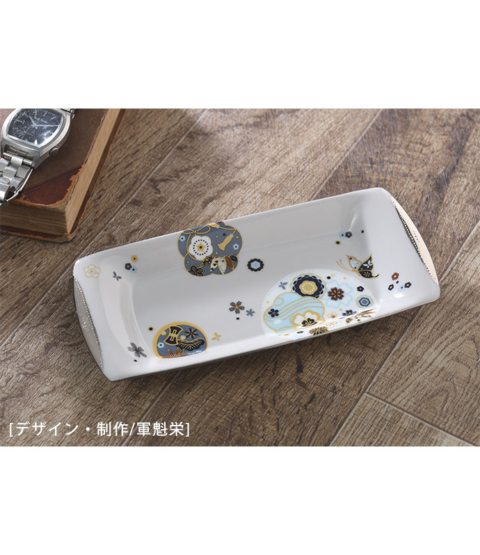 H758ルナ オブロングトレー、G012単色転写紙グレー、630128白盛り、A230セラミック・マーカー(プラチナ)