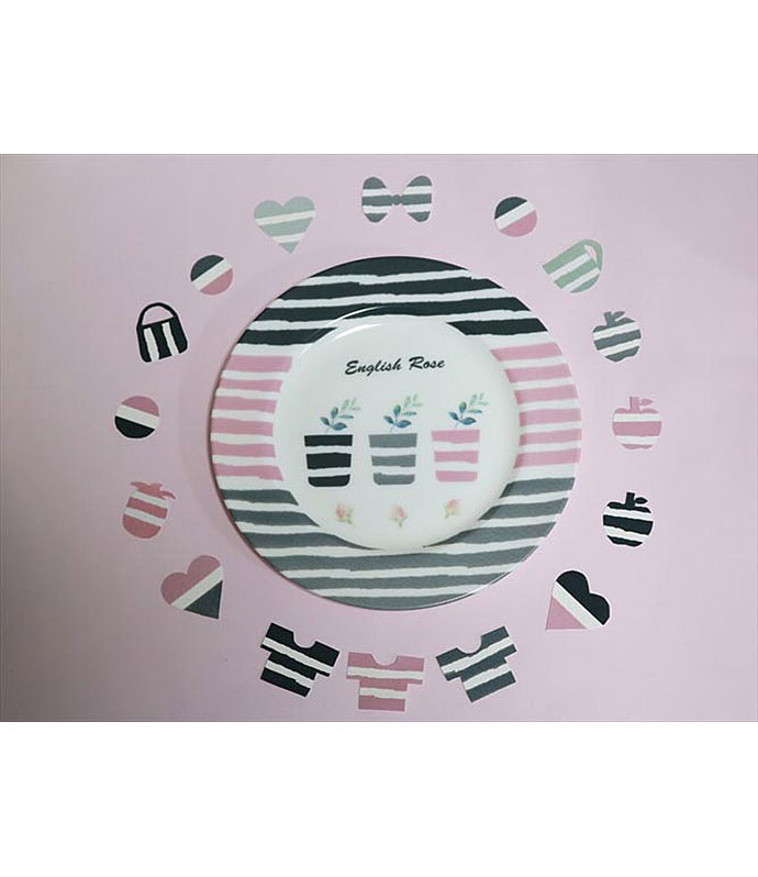 直線のストライプとはまた一味違った柔らかな雰囲気の手ちぎり風のストライプがかわいい転写紙。実際、このくらいの細さにまで手でちぎるのは至難の業。手ではちぎりにくい細めのラインだからこそ出来る小さくてかわいいアイテム作りができ、楽しみが広がります。(サンプル写真の植木鉢やTシャツなどは、その1例です)