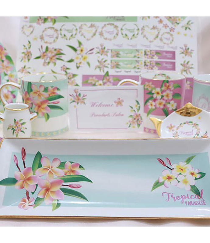 爽やかなピンクのプルメリアをモチーフに、3枚組の美しい転写紙を制作しました。