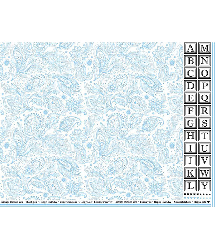アルファベットフレーム&ペイズリー1(ウォーターブルー) 転写紙